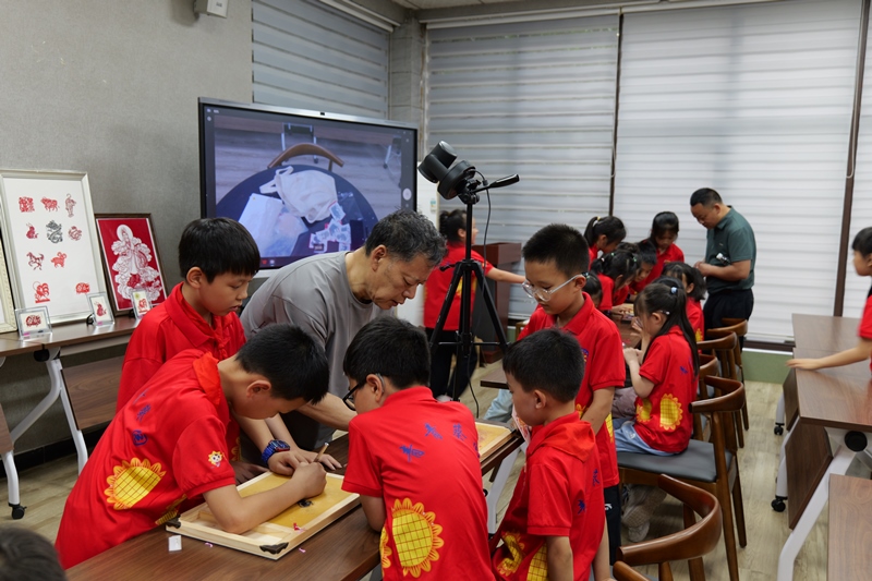 活动围绕竹蜻蜓制作和民间刻纸技艺开展。非遗传承人戴廷长老师向红河小学师生讲解和展示了竹蜻蜓的选材用料、制作流程及其所承载的力学原理;朱德隆老师向大家展示了朱氏刻纸的刀法运用和主要创新点。